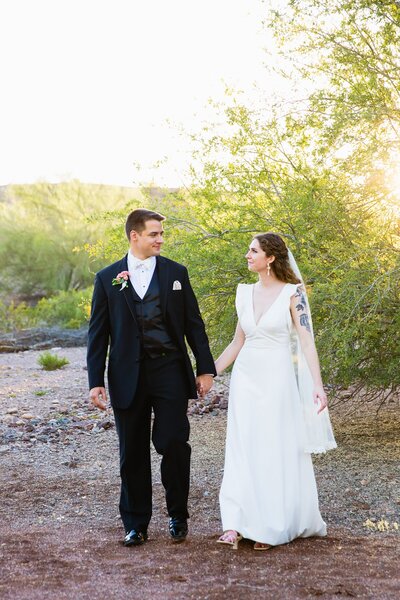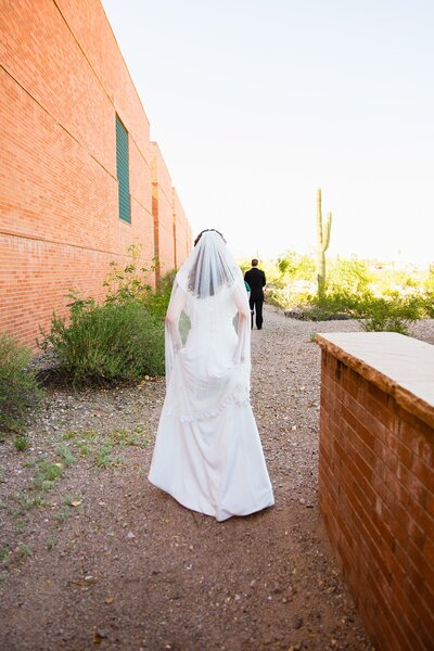 If you choose a first look, we like to set you up to mimic waking down the aisle. One partner will be set up facing away. The second partner will be set up looking at the first partner's back. Once we give the thumbs up, the second partner will walk towards the first and ask them to turn around. We will be hanging back with our zoom lenses on capturing everything. Once you have spend a few minutes together, you will let us know you are ready to start taking your more formal portraits!
