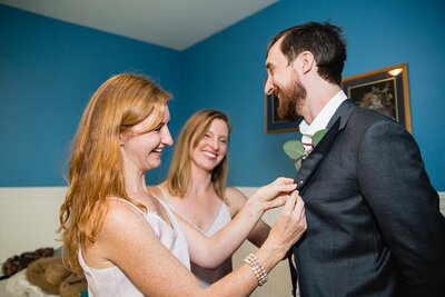 If you are going to have anyone helping you get ready (usually mom, a sibling, or close friend), make sure they are camera ready before it is time to take your getting ready pictures. These helpers usually will help you put on your dress, pin boutonnieres, put on jewelry, and put on ties.