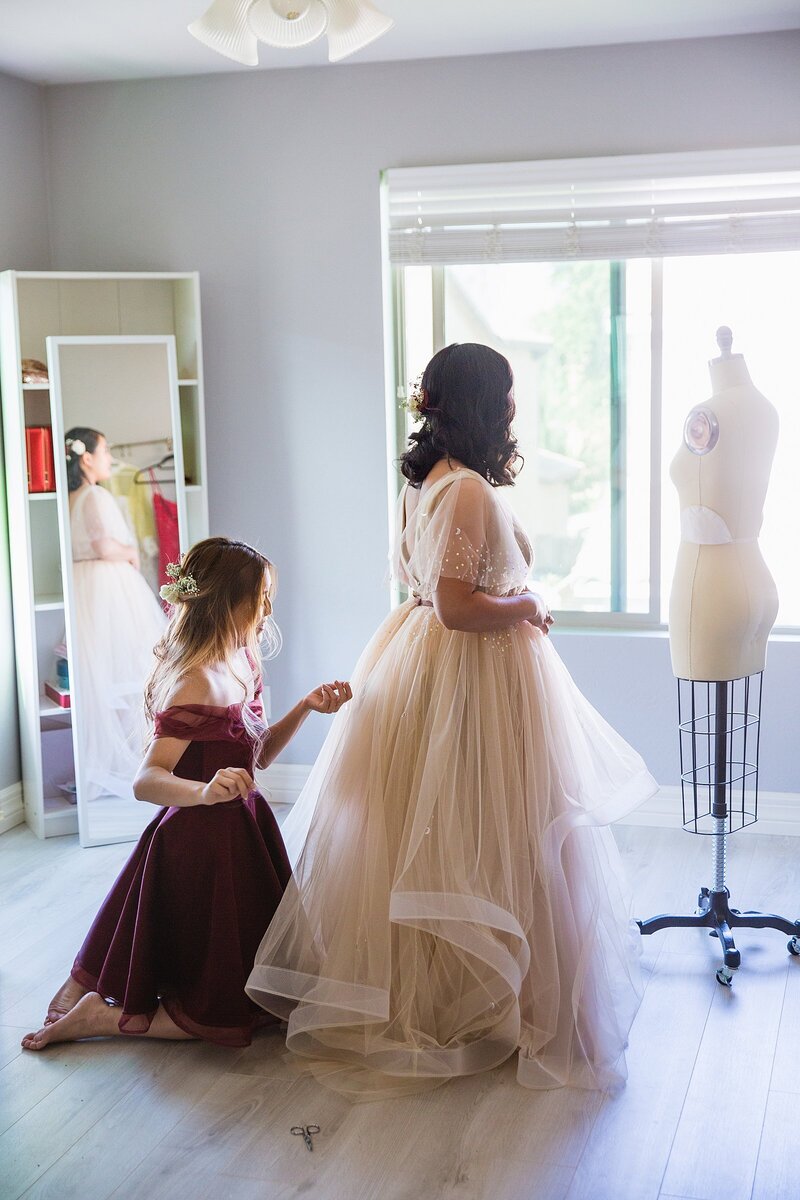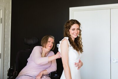 For those getting their make-up done, we will come in for the final touch-ups and to remind anyone helping you get dressed to get dressed first. We will then photograph your family and friends helping you into your outfit, putting on your shoes, jewelry, and any other finishing touches.