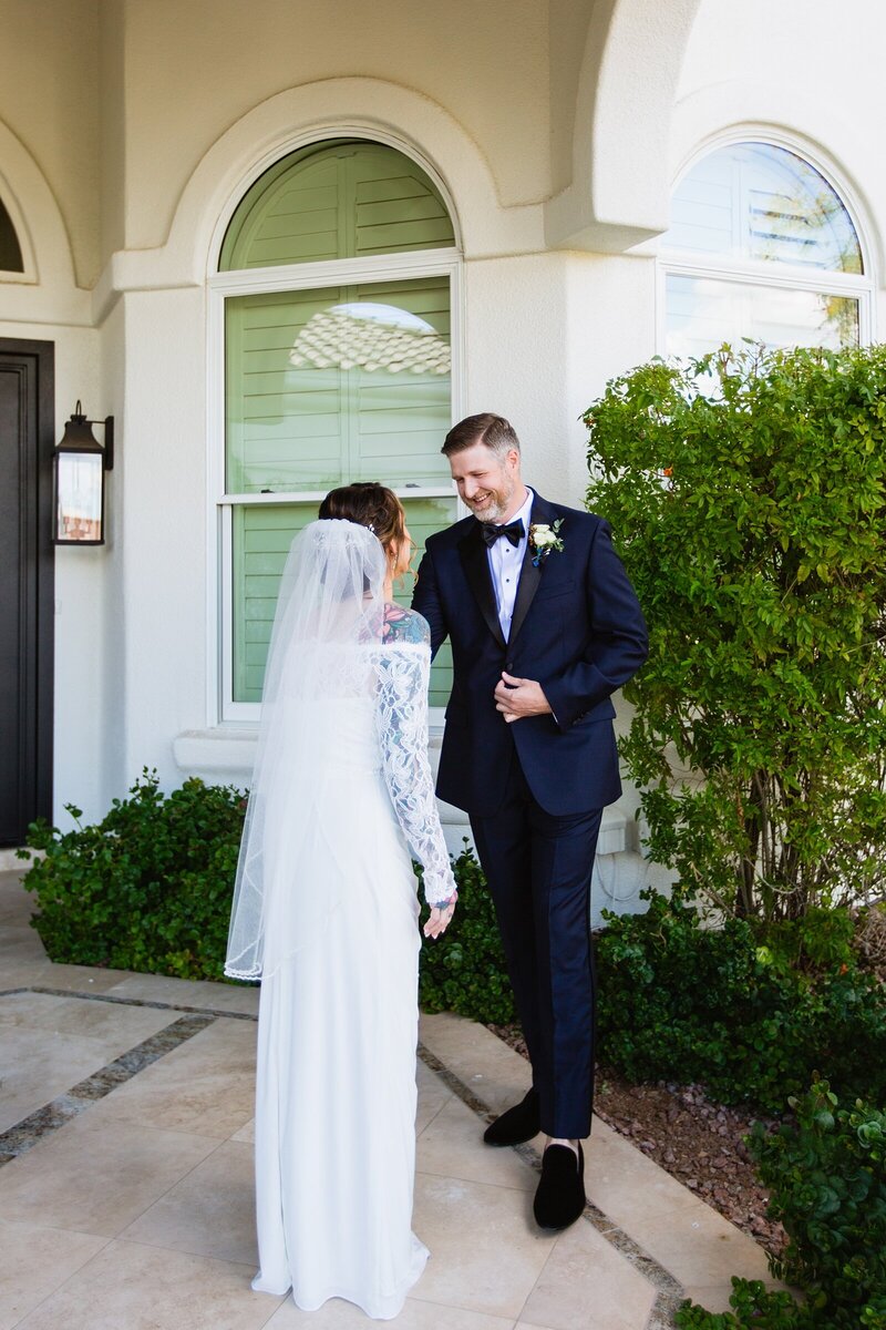 First looks are our absolute fav! What is a first look? It is when you see each other before the ceremony. If you aren't sure if a first look is for you, take a peep at the benefits below and discuss them with your partner. Most of our couples choose to do a first look, but I want you to make the best decision for you and your wedding day. We are totally ready to capture your day with or without a first look! But first, let me tell you how we like to do the first looks.